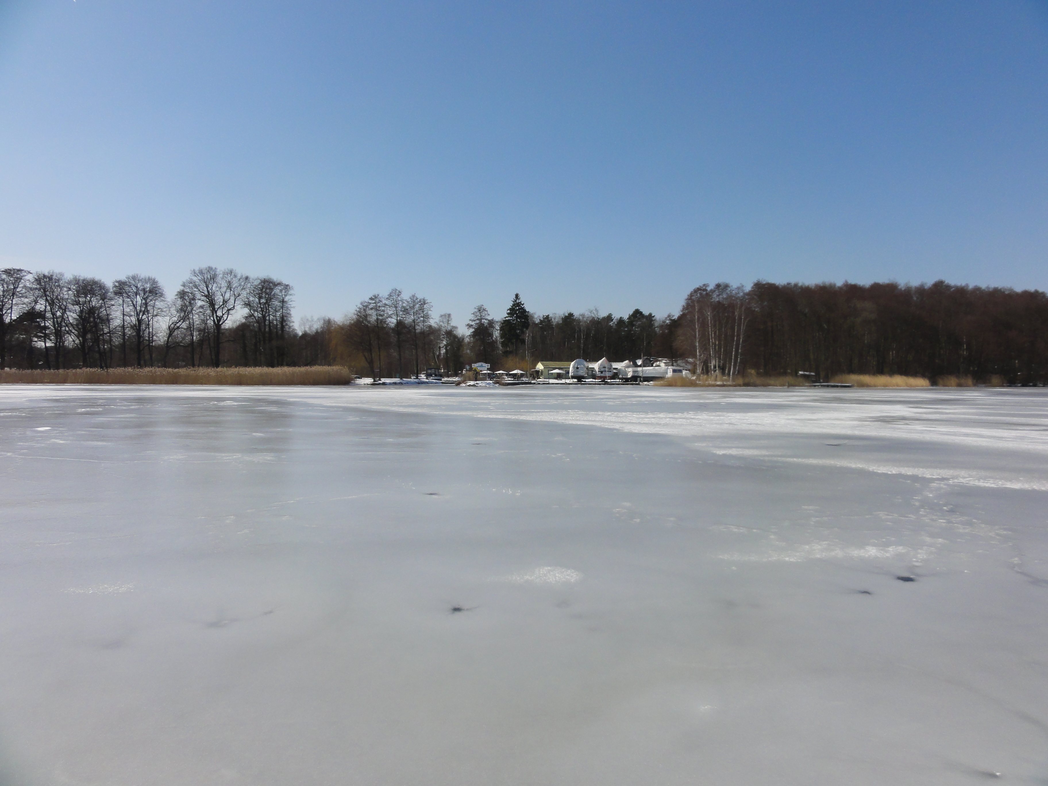 Eisstärke ist zu gestern unverändert: Im Schneeeis 8cm, in den schwarzen Löchern 5cm.