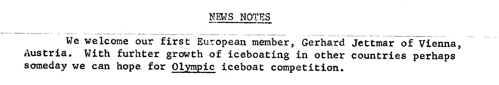 Excerpt from the I.D.N.I.Y.R.A. newsletter of 1962 November 10, welcoming the first European member in the organisation.